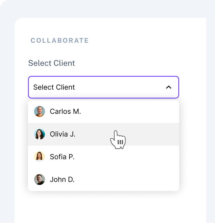 Collaborate with your client, request missing documents and finalize everything in a unified workspace.